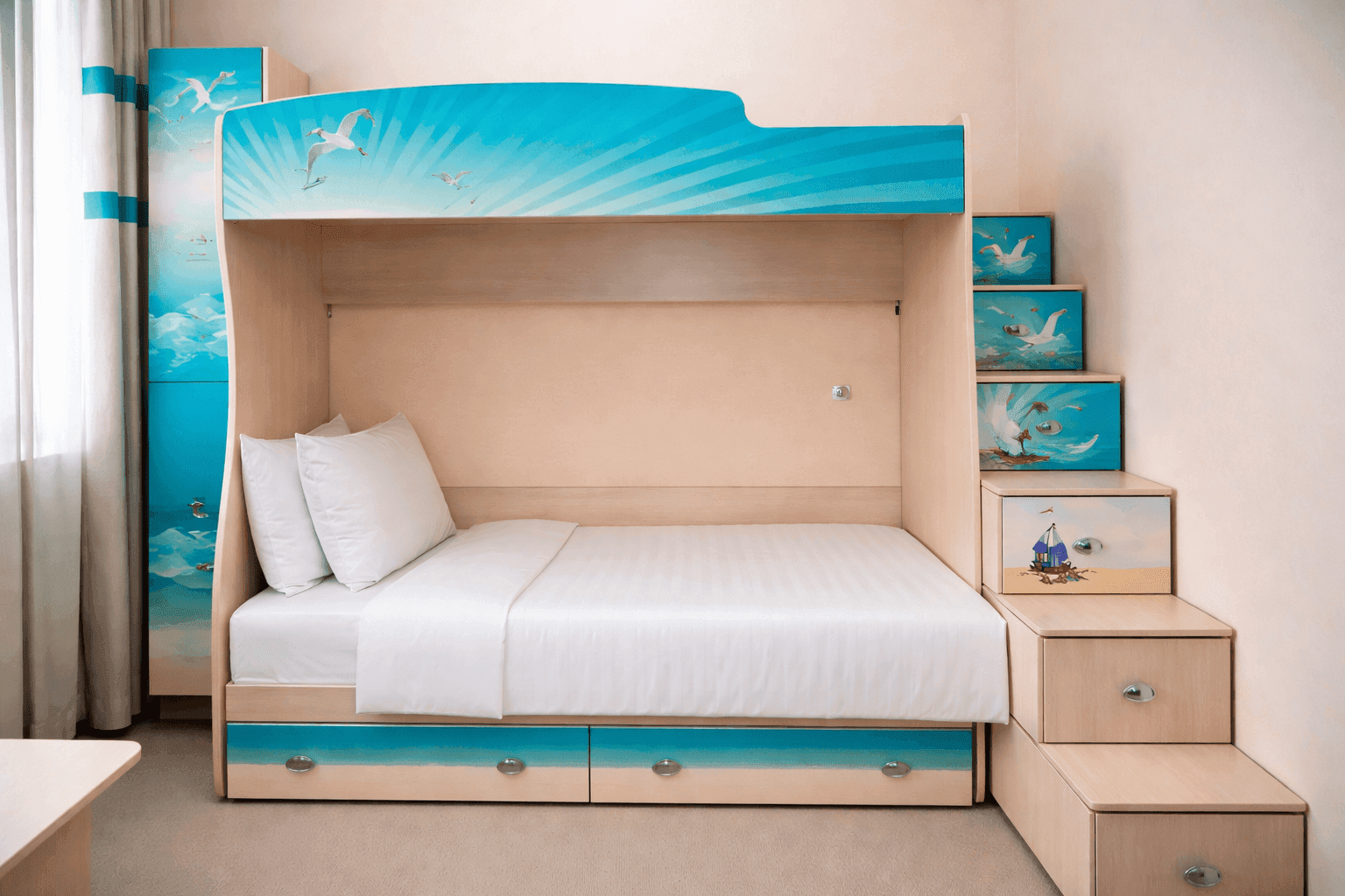 Семейный двухкомнатный четырёхместный комфорт с просторным балконом – это идеальный номер площадью 32 м² для полноценного отдыха всей семьи в бутик-отеле «АССОЛЬ». Две отдельные комнаты обеспечивают удобство и уединение взрослых и детей, а просторный балкон с видом на город станет любимым местом для совместного времяпрепровождения.